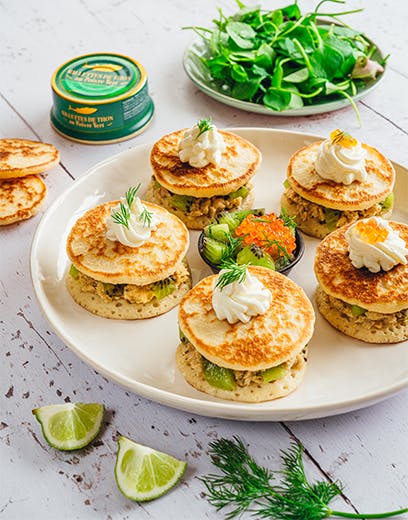 Go for variety to impress your guests by making these little burger-style canapés with blinis, fromage frais and our full range of fish spreads: subtle rillettes, melt-in-your-mouth creams and fine iodised mousses that are simply spread on!