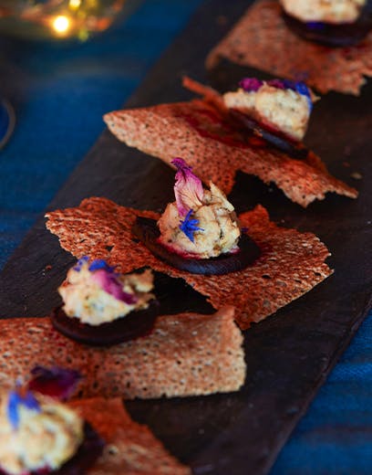 Step 2Place a small amount of pollock rillettes on top, followed by the dried flowers