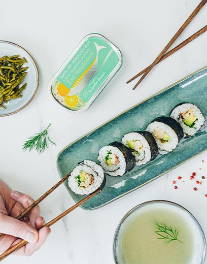 Accompany your makis with sweet or savoury soy sauce to taste, and some wasabi.