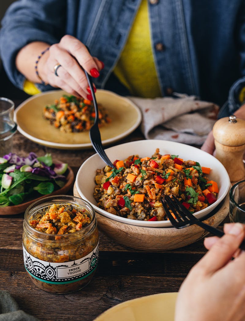 - Indie Veggie Sublimée par une onctueuse sauce aux épices indiennes et à la crème de noix de coco, cette recette végétarienne offre un délicieux curry de légumes et d’algues bio.
