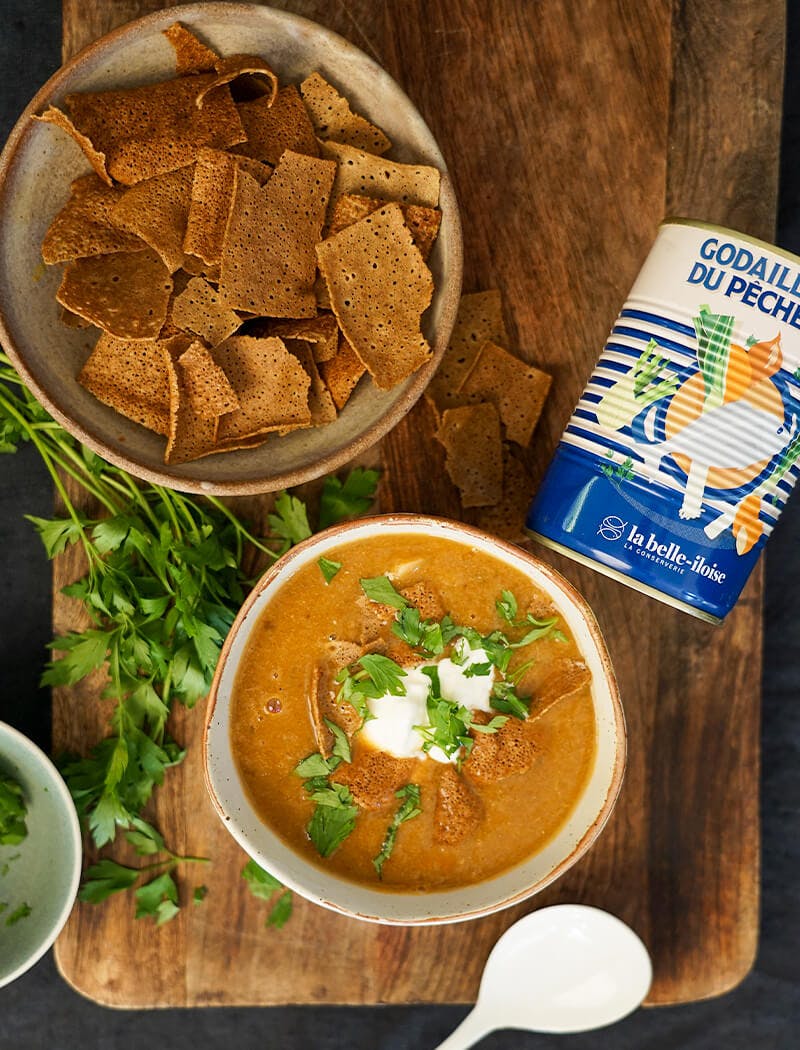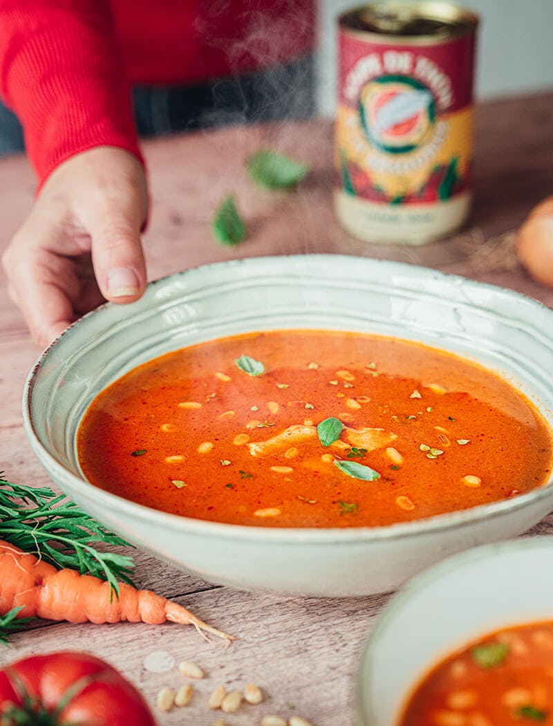 - Soupe de Thon à la Basquaise Inspirée du Pays basque et des saveurs de la piperade, cette soupe marie de généreux morceaux de thon blanc germon à de fondantes courgettes, lanières de poivrons rouges et tomates séchées aux notes fruitées.