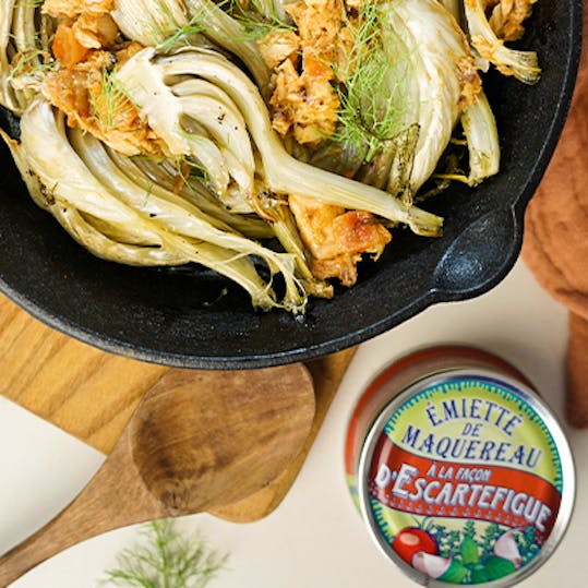 - Dénomination légale : Émietté de maquereau à la façon d’Escartefigue